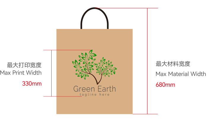 The digital paper bag printing machine is a plate-free inkjet printing system designed specifically for packaging products such as paper bags and tote bags. Using CMYK four-color inkjet technology, it can directly print electronic files (such as designs, text, and variable data) at high speed onto absorbent surfaces such as kraft paper, greaseproof paper, and biodegradable materials. Supporting single- or double-sided printing, it is suitable for small-batch customization, personalized logos, and variable data printing, significantly reducing the minimum order requirement for traditional printing.