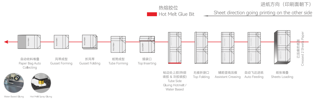 4、Simple maintenance, long service life, non-creasing paper bag folding opening and inserted bag opening ensure the beauty of the paper bag;